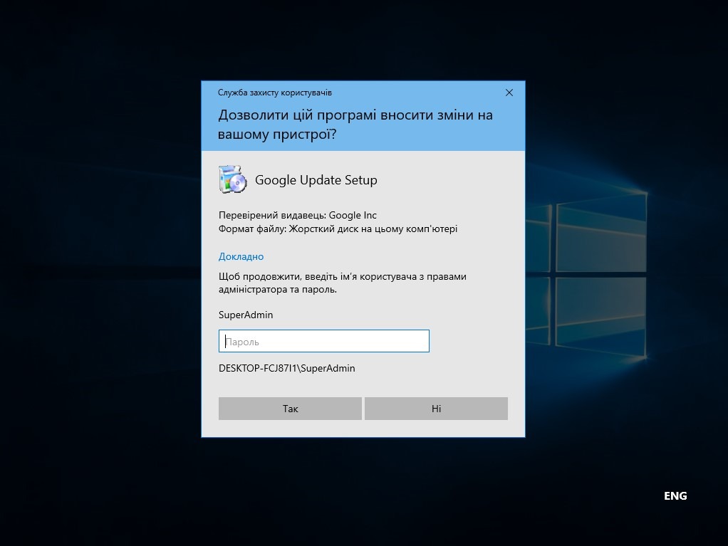 Після цього перезавантажте комп’ютер та увійдіть, як звичайно, у свій обліковий запис Name. Ваші програми, іконки та документи на місці, нічого не змінилось. Однак, якщо ви захочете встановити якусь програму, система запитає у вас пароль від облікового запису Адміністратора SuperAdmin. В обліковий запис SuperAdmin більше не потрібно входити, хіба що в крайньому разі для розв’язання проблем із системою.